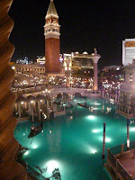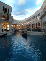 Alors là, ils ont vraiment fait fort: canaux qui traversent l'hôtel avec gondoles et gondoliers chantant a capella, mosaïques, statues, et comble de l'étonnant, quelques rues de Venise reconstituées sous un faux ciel bleu. On passe de la nuit au jour en quelques pas... c'est Las Vegas!