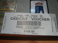 Nous décidons de retenter 5 nouveaux malheureux dollars aux machines à sous et cette fois on s'est vraiment bien éclaté. Une machine très rigolote, qui jouait du "Disco inferno" et du "Celebration" lorsque nous étions chanceux, et nous sommes repartis très fiers avec 105 dollars. :-)))