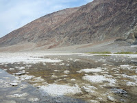 A quelques kms de là, nous atteignons Badwater. Il s'agit du point le plus bas des Etats-Unis (86m en dessous du niveau de la mer), et sans doute aussi l'un des plus chaud! C'est le seul résidu du grand lac évaporé, et l'eau y est incroyablement salée.